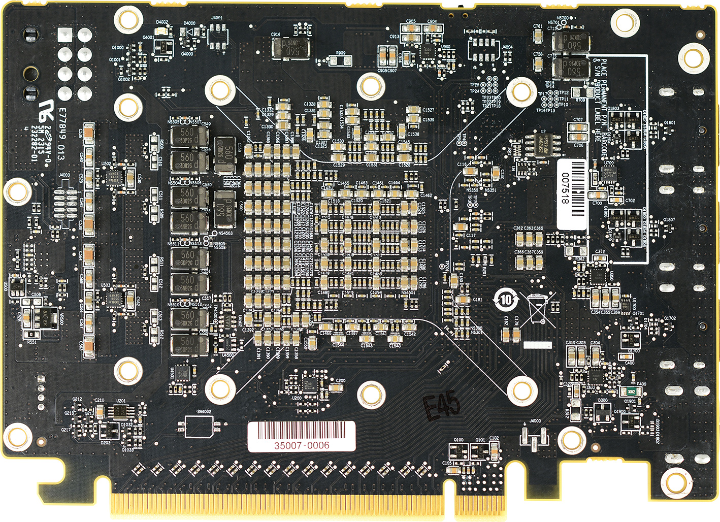 The board features 4+1-phase voltage regulator module based on high-end solid-state chokes as well as International Rectifier’s IR3564B dual-output digital multi-phase controller used on advanced mainboards. The VRM is extremely sophisticated and features additional chokes to stabilize and clean power in a bid to ensure stable operation in rather extreme conditions. The card has one 8-pin auxiliary PCI Express power connector.