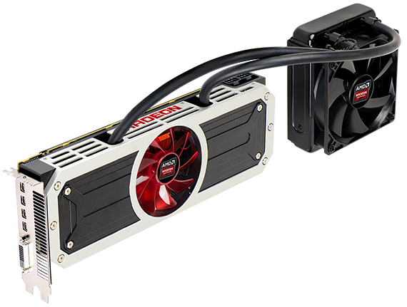 AMD Radeon R9 295X2 graphics card, which carries two AMD Hawaii graphics processing units and 8GB of GDDR5 memory onboard, boasts whopping 5632 stream processors, 352 texture units and 128 raster operating units in total. Performance of the Radeon R9 295X2 graphics adapters matches that of two Radeon R9 290X graphics boards and at present this is the world’s highest-performing graphics card. The adapter features a custom closed-loop liquid cooling solution and requires a PC case with a lot of space inside.