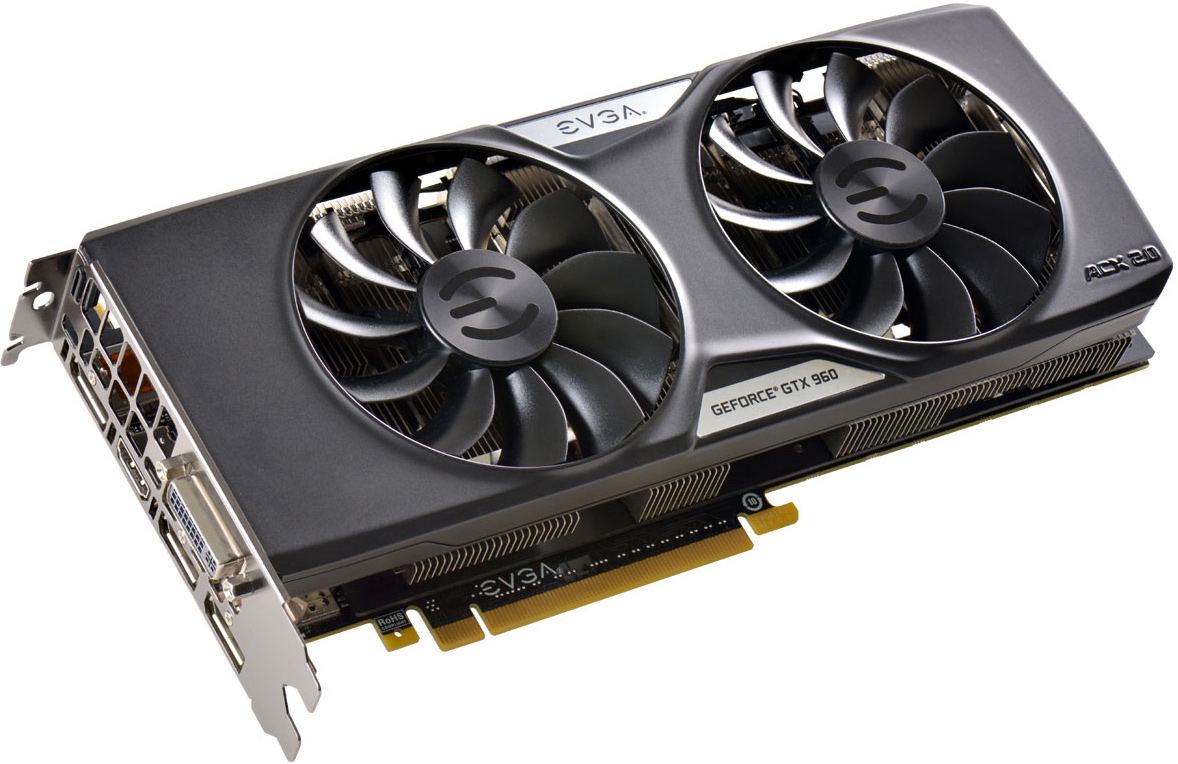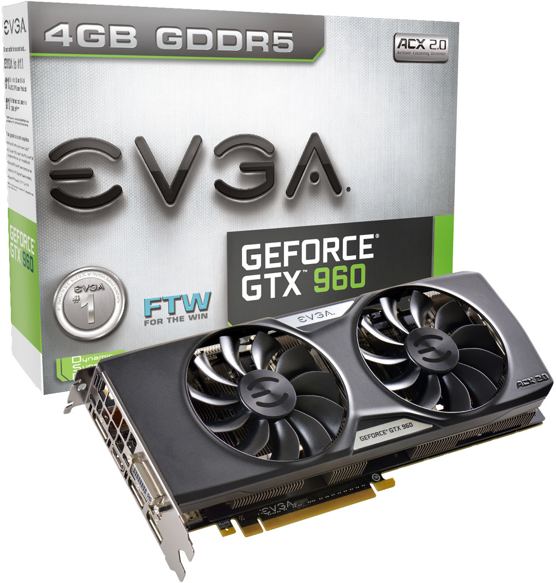 EVGA’s GeForce GTX 960 product family is very broad and includes various models with increased clock-rates, advanced coolers as well as 2GB or 4GB of GDDR5 memory. The top-of-the-range EVGA GeForce GTX 960 4GB FTW ACX 2.0+ features 1304GHz GPU base clock-rate and offers compute performance of around 2.67TFLOPS.
