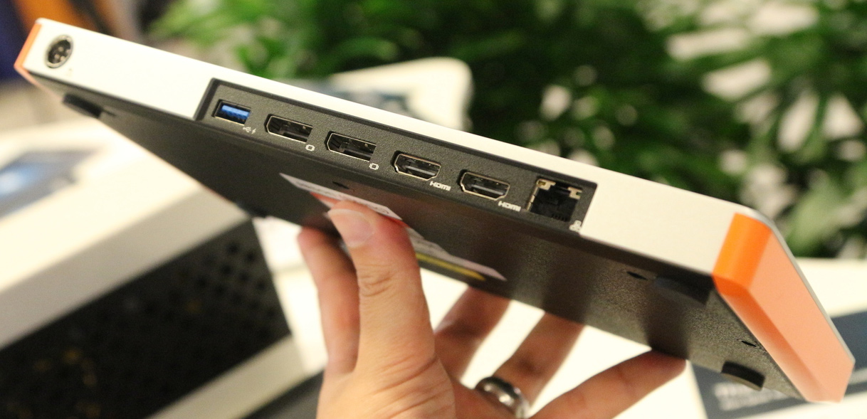 The graphics dock resembles the one briefly demonstrated earlier this year in Intel’s Thunderbolt 3 presentation. The device is based on AMD Radeon R9 M385 (“Bonaire XT” GPU with 896 stream processors) and provides three USB 3.0 ports, two HDMI ports, two DisplayPorts, external audio, an Ethernet port and a USB 3.1/Thunderbolt 3 type-C port to connect to bandwidth-demanding devices.
