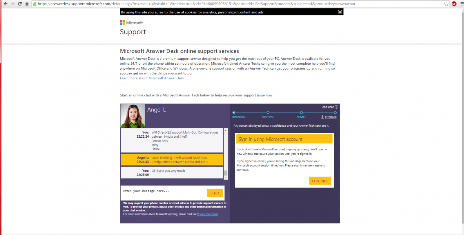 A Microsoft technical support staff member said that DirectX 12 will support “multi-GPU configurations between Nvidia and AMD”, according to a screenshot published over at LinusTechTips, a community known for various interesting findings. The Microsoft representative did not reveal requirements necessary to make an AMD Radeon and an Nvidia GeForce run in tandem, besides, she also did not indicate actual benefits of such setup.