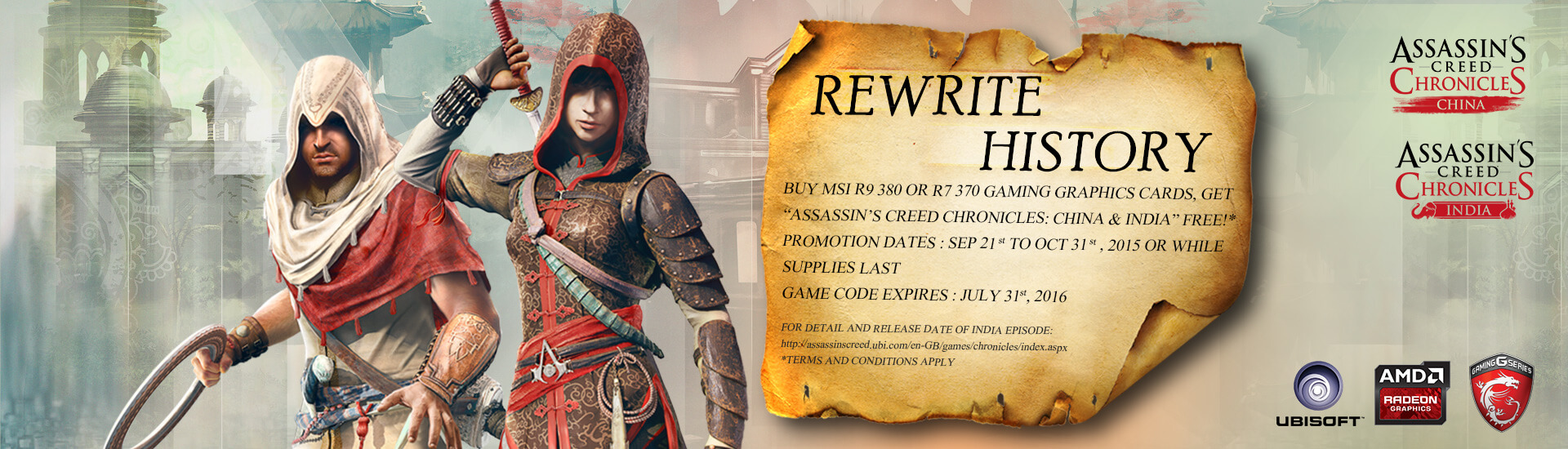 MicroStar International has announced that for a limited time it will bundle Assassin’s Creed Chronicles with select AMD Radeon R9 and R7-based graphics adapters. Since the AC Chronicles use 2.5D graphics, they should run perfectly on systems powered by such graphics boards.