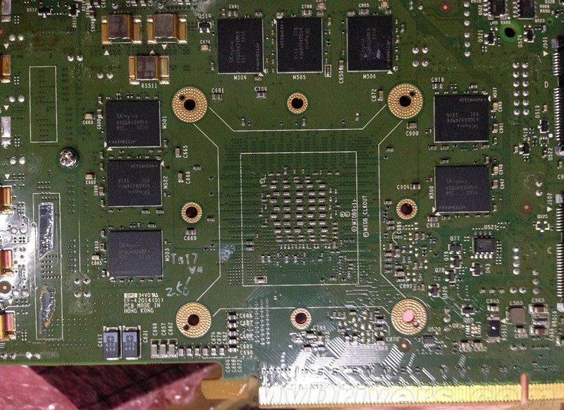 The mysterious graphics card is powered by the A1 revision an unknown graphics processing unit (marked as 1421A1 T6A996.0A0), which was made on the 21st week of the year 2014 (in late May). The chip itself is about the size of the code-named GK104 GPU, maybe a little bigger, but definitely not as big as the code-named GK110 graphics processor. The die size of approximately 300mm2 indicates that the chip is a new performance-mainstream GPU from Nvidia. Previously it was reported that the codename of the chip is either the GM104 or the GM204.