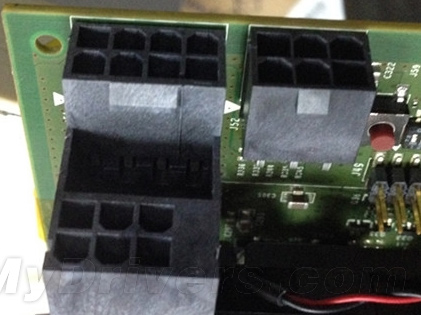 The picture of the graphics adapter that was published by MyDrivers is heavily masked in order to protect identity of the source and therefore we have no idea about peculiarities of the graphics card’s design. What we do know from the images of the graphics board is that it is a high-end solution that carries a lot of memory, requires up to 375W of power (it has two 6-pin and one 8-pin PCIe power connectors) and supports 3-way/4-way SLI technology. The board is not the final since it features a number of technical connectors and knobs not present on commercial products (it is also hard to believe that a single-GPU graphics card needs 375W of power), which is an indicator that the graphics adapter is months away.