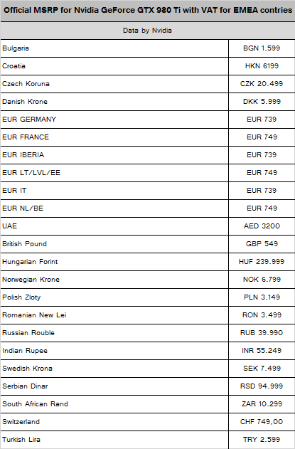 KitGuru Says: Nvidia’s prices for Europe continue to disappoint. First, Nvidia made its GeForce GTX Titan X considerably more expensive in the European Union compared to the U.S. This time the price of the GeForce GTX 980 Ti in some European countries is nearly $200 higher compared to the MSRP of the product in the United States.