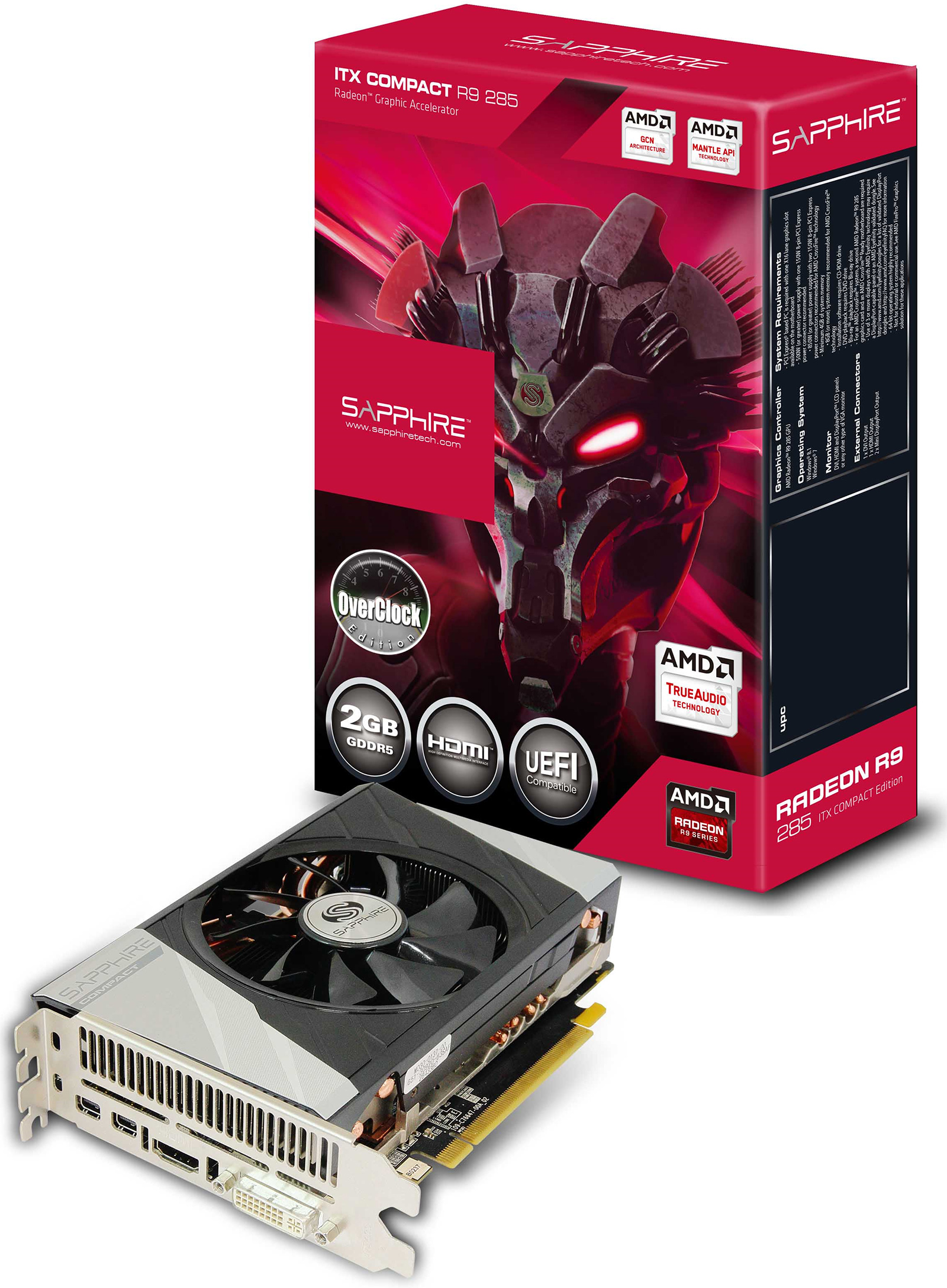 This week Sapphire introduced its Radeon R9 285 ITX compact OC edition 2GB GDDR5 graphics card, which was designed specifically for small form-factor PCs. As the name implies, the novelty is powered by AMD’s code-named “Tonga” graphics processor featuring the GCN 1.2 architecture as well as 1792 stream processors, 112 texture units, 32 render output units and 256-bit GDDR5 memory interface.