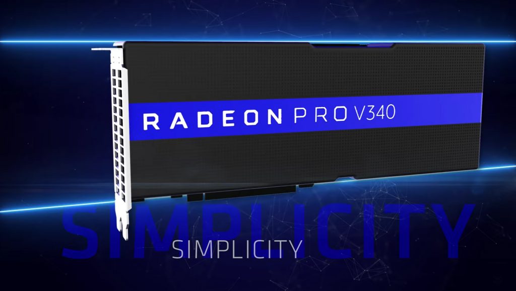 During its panel at the Las Vegas-bound VMworld, AMD revealed its brand new dual-Vega Radeon Pro V340 with 32GB of second-generation Error Correcting Code (ECC) high-bandwidth memory (HBM2). With no mention of a die shrink, it’s presumed to be running on existing Vega architecture, pairing 14nm GPUs that would otherwise be found within Vega 64 or Vega 56 into a dual-slot design.