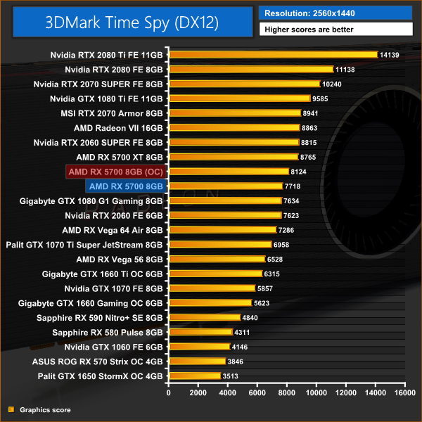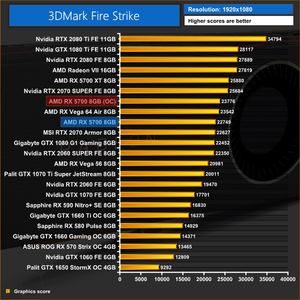 Like I found with the RX 5700 XT, overclocking the 5700 doesn't really bring big gains. Our Fire Strike score increased by just over 1000 points, while Time Spy saw an increase of around 400 points – both of which are fairly mediocre improvements. A gain over just over 3FPS in Ghost Recon: Wildlands isn't something to get too excited about either. We'll see how the situation develops as overclocking a partner card with a better cooler/increased power limit may help, while additional driver optimisations may also be needed. Right now, however, overclocking seems pretty limited.