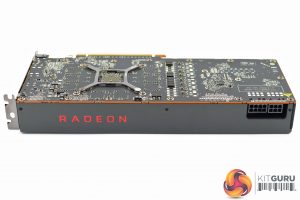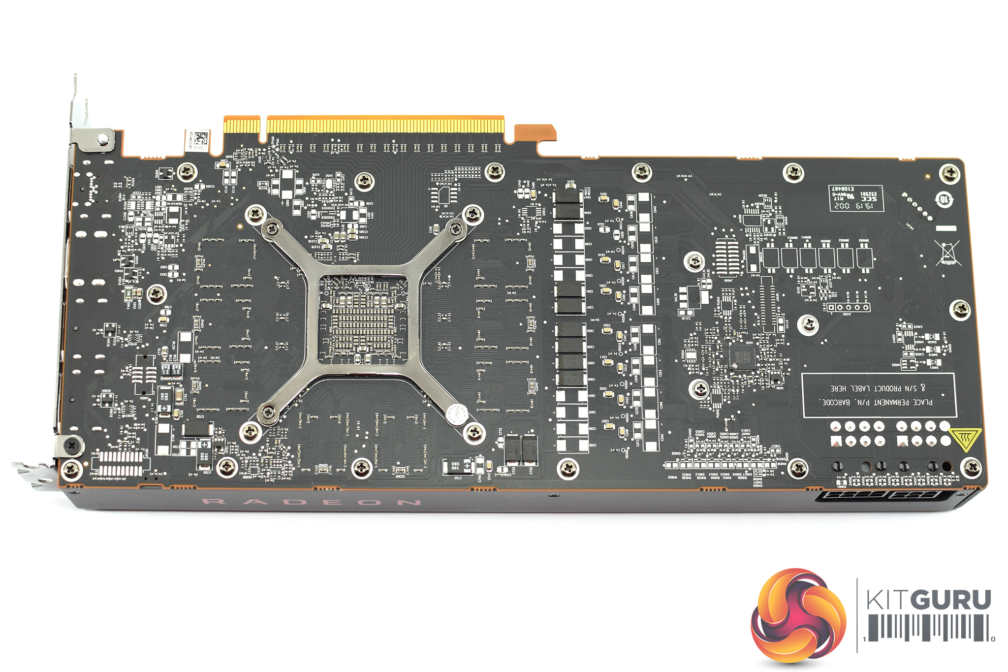 As for the backplate… well, there isn't one, and we instead get a direct look onto the back of the card's PCB. This isn't the absolute end of the world, and I appreciate AMD is trying to keep costs down – but this is still a $349 graphics card, and I would expect a backplate at this price. Not only to help with hot spots on the back of the PCB, but also to provide a layer of protection against a potentially leaky AIO cooler, and also I think it looks better from an aesthetic point of view.