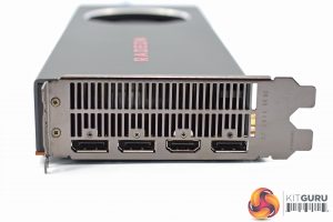 Lastly, for display outputs there are 3x DisplayPort and 1x HDMI connectors. Most of the I/O bracket is given over to ventilation, where the hot air will be exhausted out the back of the case.