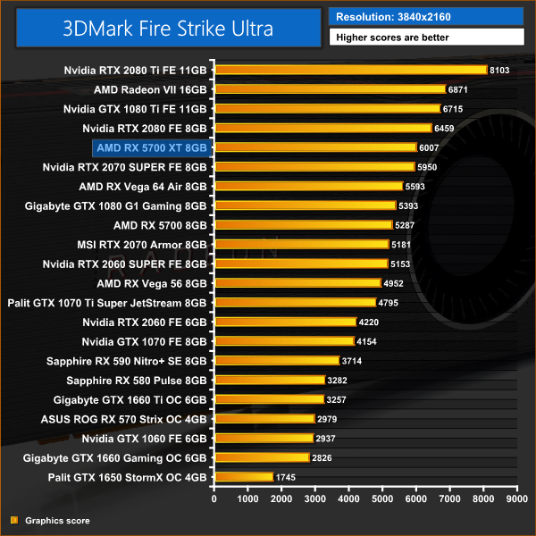 The 5700 XT is off to fascinating start in 3DMark testing. It's faster than the 2070 SUPER in both Fire Strike and Fire Strike Ultra (both DX11), but is slower than the 2060 SUPER when it comes to Time Spy (DX12).