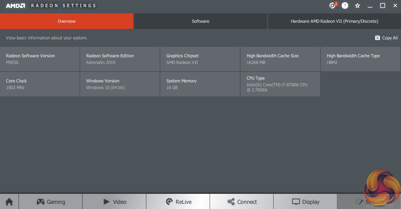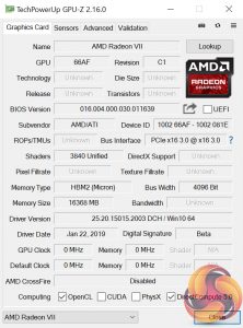 One last thing to mention with the Radeon VII is the power draw. AMD rates the board power consumption at 300W, though it is interesting there is no secondary BIOS, or power profile available in Wattman, that manages the power draw to a lower level. With Vega 64, for instance, users could choose between either the Primary or Secondary V-BIOS (with the Primary BIOS having a higher TDP) and then either the ‘Balanced' or ‘Turbo' profiles within Wattman. With Radeon VII, there is only one ‘default' power state, unless you manually overclock.