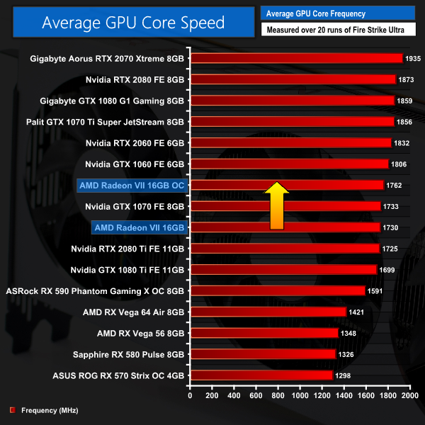 In a nutshell, either my card's operating frequency would level out at essentially stock speeds, or I would actually see the frequency drop below stock speeds and achieve even worse results. I am not yet sure how much of this is sample-dependent – I could just have a very poor overclocking chip, or it could be the case for most Radeon VII cards. In any case, I will try again with Afterburner when that is updated and see if I can achieve any better results.