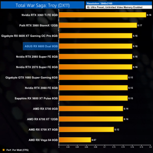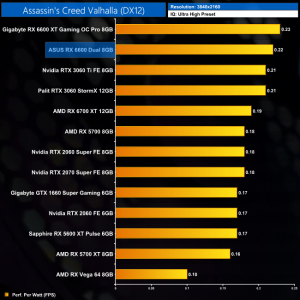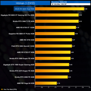 Lastly, while the RX 6600 really isn't intended for 4K gaming at all, it's still joint-top in terms of performance per Watt at this resolution, level with the RTX 3060 Ti.