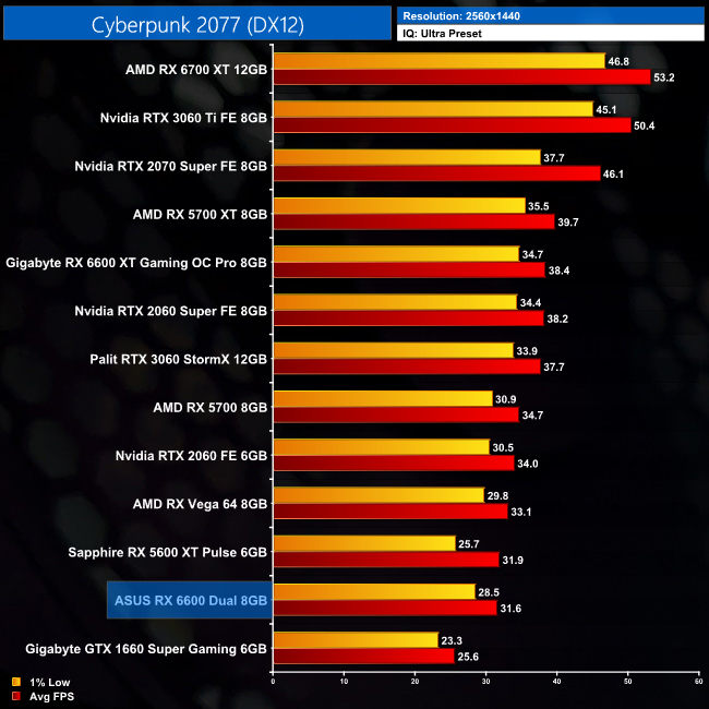 Stepping up to 1440p sees the 6600 fall away somewhat, as it is now 16% slower than the RTX 3060 and even 7% behind the RTX 2060.