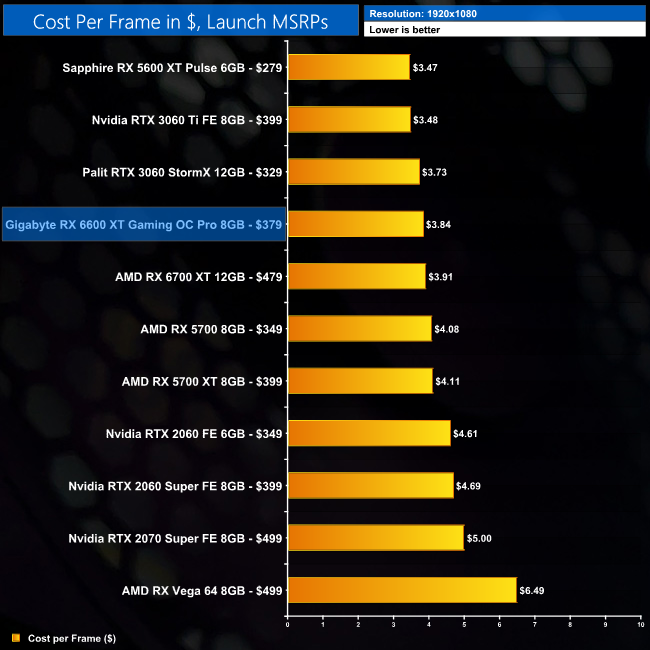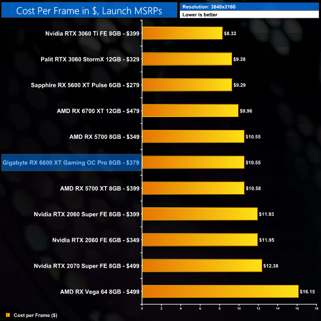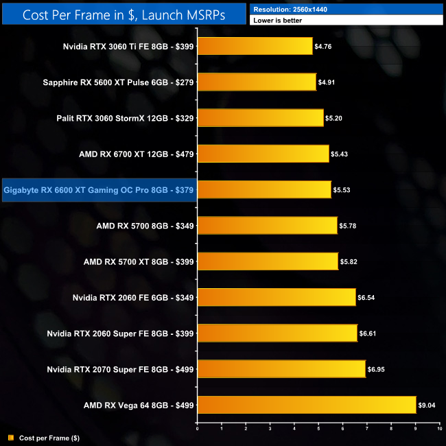 That difference shrinks at 1440p, too, where the 6600 XT is just 5% cheaper per frame. It is also 16% more expensive per frame than the RTX 3060 Ti, with Nvidia's GPU just 5% more expensive in terms of MSRP, but offering significant better performance.
