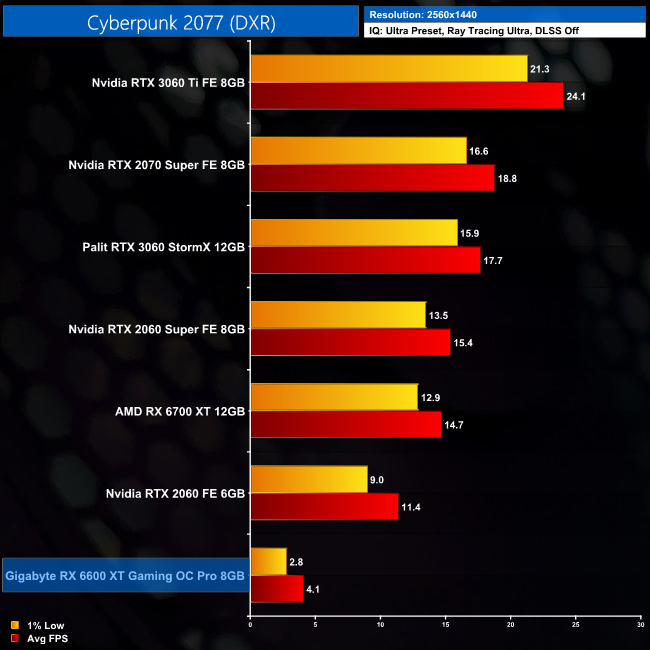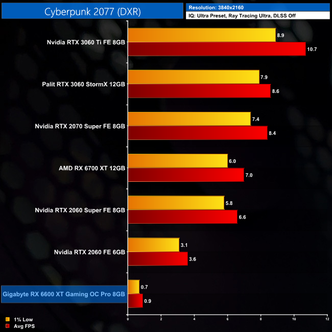 Here we test Cyberpunk 2077, this time testing with the in-game ray tracing effects set to their highest values.