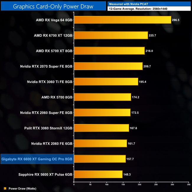 Here we present power draw figures for the graphics card-only, on a per-game basis for all twelve games we tested at 1440p. This is measured using Nvidia's Power Capture Analysis Tool, also known as PCAT. You can read more about our updated power draw testing methodology HERE.