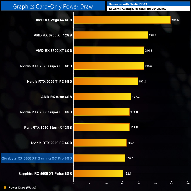 Here we present power draw figures for the graphics card-only, on a per-game basis for all twelve games we tested at 2160p (4K). This is measured using Nvidia's Power Capture Analysis Tool, also known as PCAT. You can read more about our updated power draw testing methodology HERE.