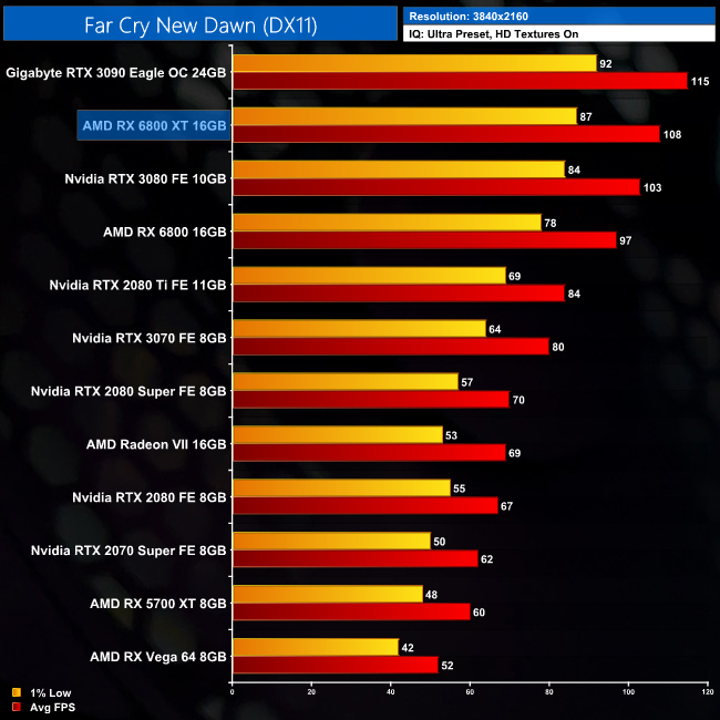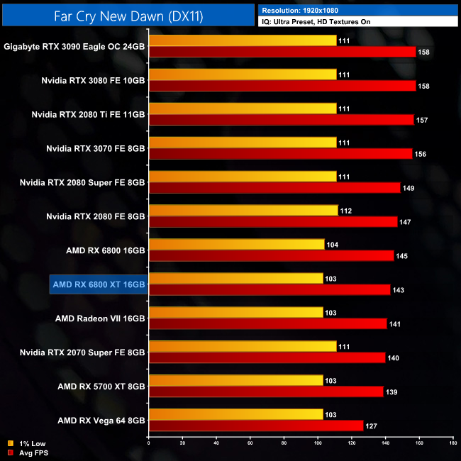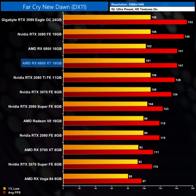 This will probably be my last set of reviews using Far Cry New Dawn as it's CPU-limited nature makes for some strange results – at 1440p, for instance, the RX 6800 is a frame faster than the RX 6800 XT.