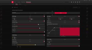 We used AMD Wattman for our manual overclocking. We started off by maximising the power limit (up to 115%), before settling with a maximum frequency of 2400MHz. The card was stable with 2500 or 2600MHz dialled in, but actual frequency diminished slightly as I pushed passed 2400MHz. It was a similar story for the memory overclocking – my card was perfectly stable with memory frequency set to 2150MHz, but I found performance was slightly better with it set to 2100MHz.