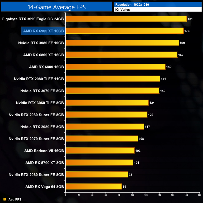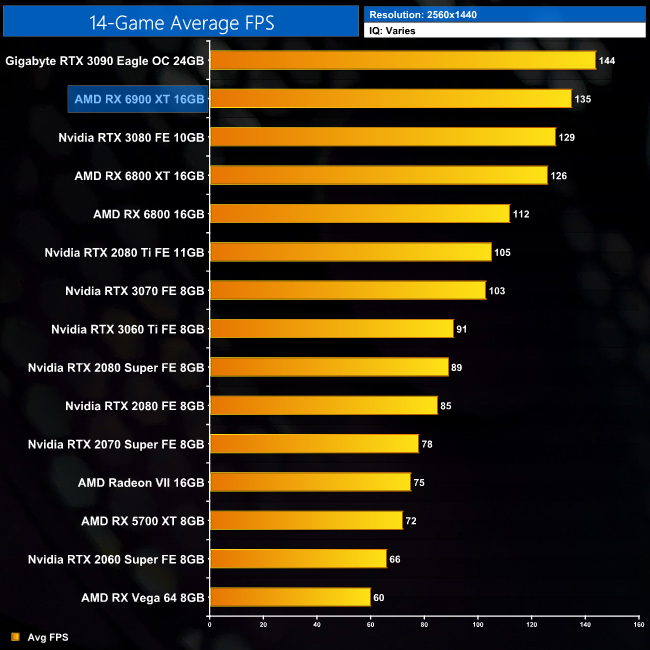 Here we present frame rate figures for each graphics card, averaged across all 14 games on test today. These figures can disguise significant variations in performance from game to game, but provide a useful overview of the sort of performance you can expect at each resolution tested.