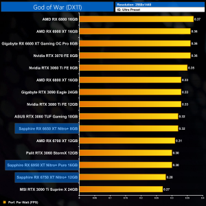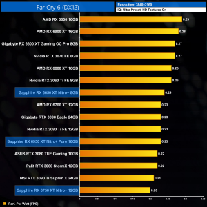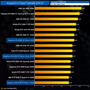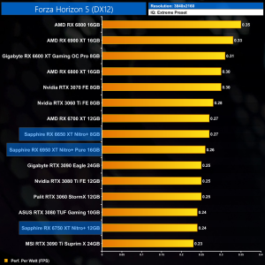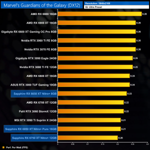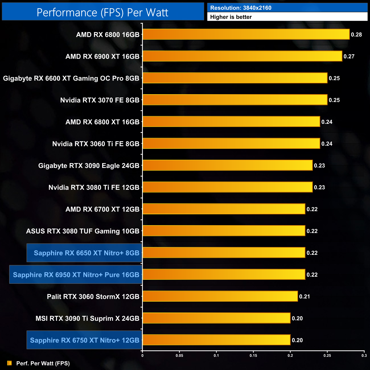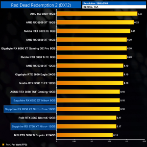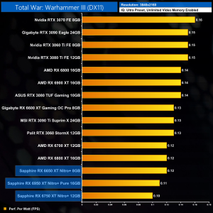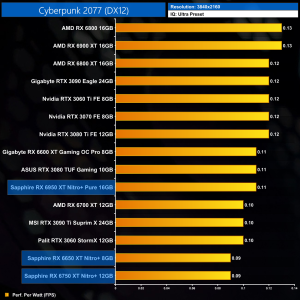 And then at 4K, we can see the RX 6950 XT Nitro+ is now 19% less efficient than the original RX 6900 XT. That's the price you pay to push clock speeds that bit higher, as we quickly run into diminishing returns.