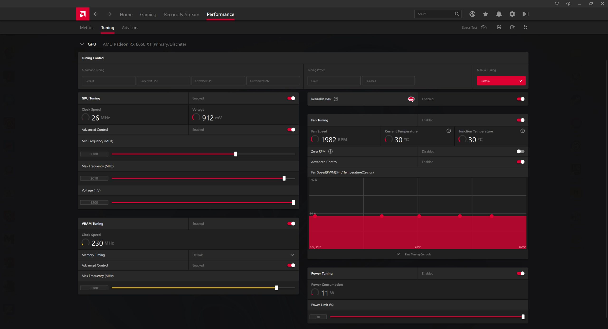 For our manual overclocking tests, we used AMD's built-in performance tuning tools. Our best results are as below.