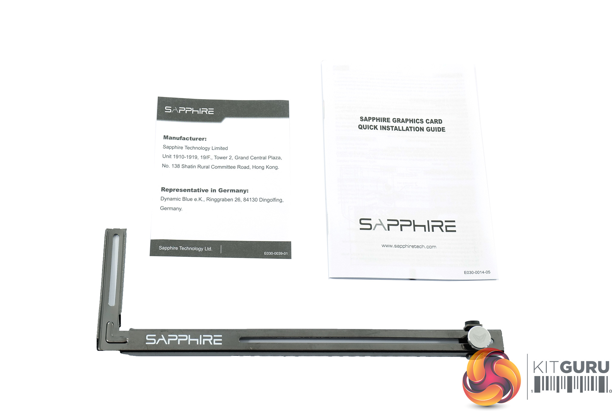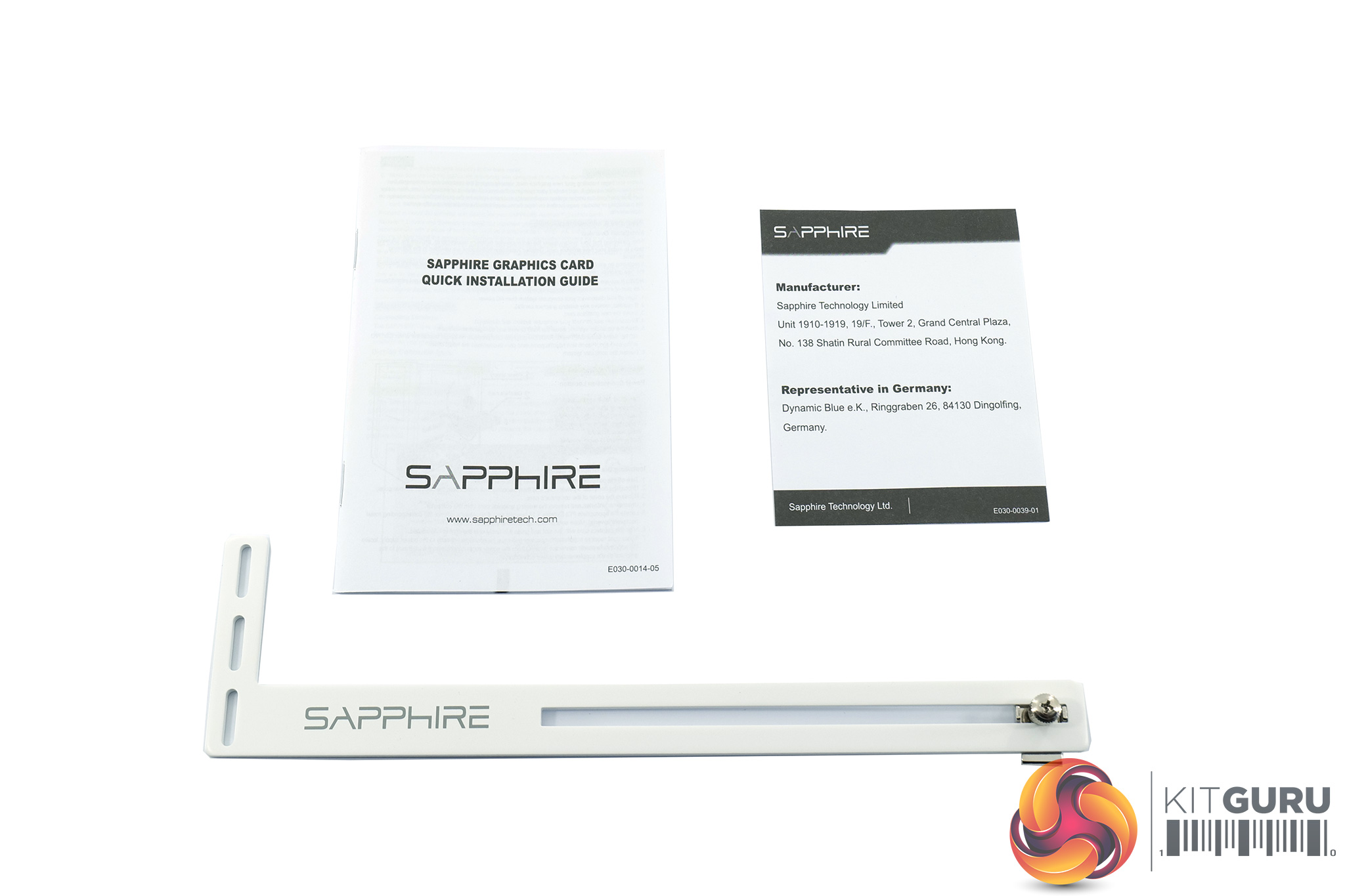 Inside, we find more of the same documentation, but there is a white GPU support bracket included as well.