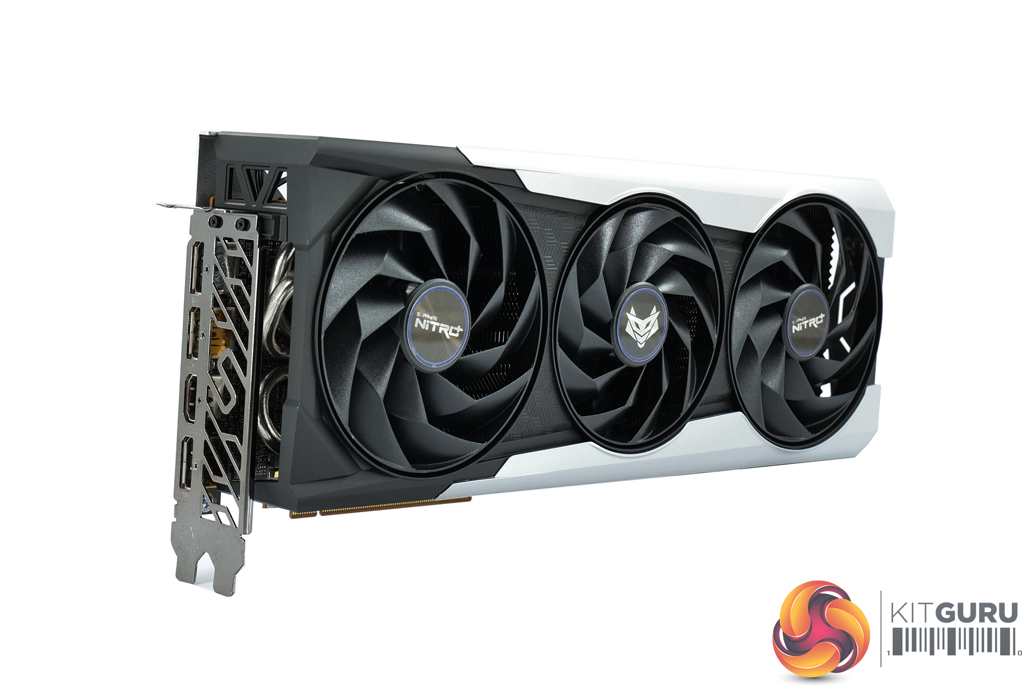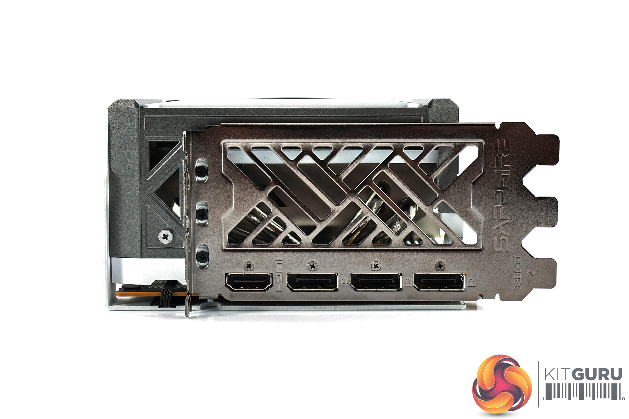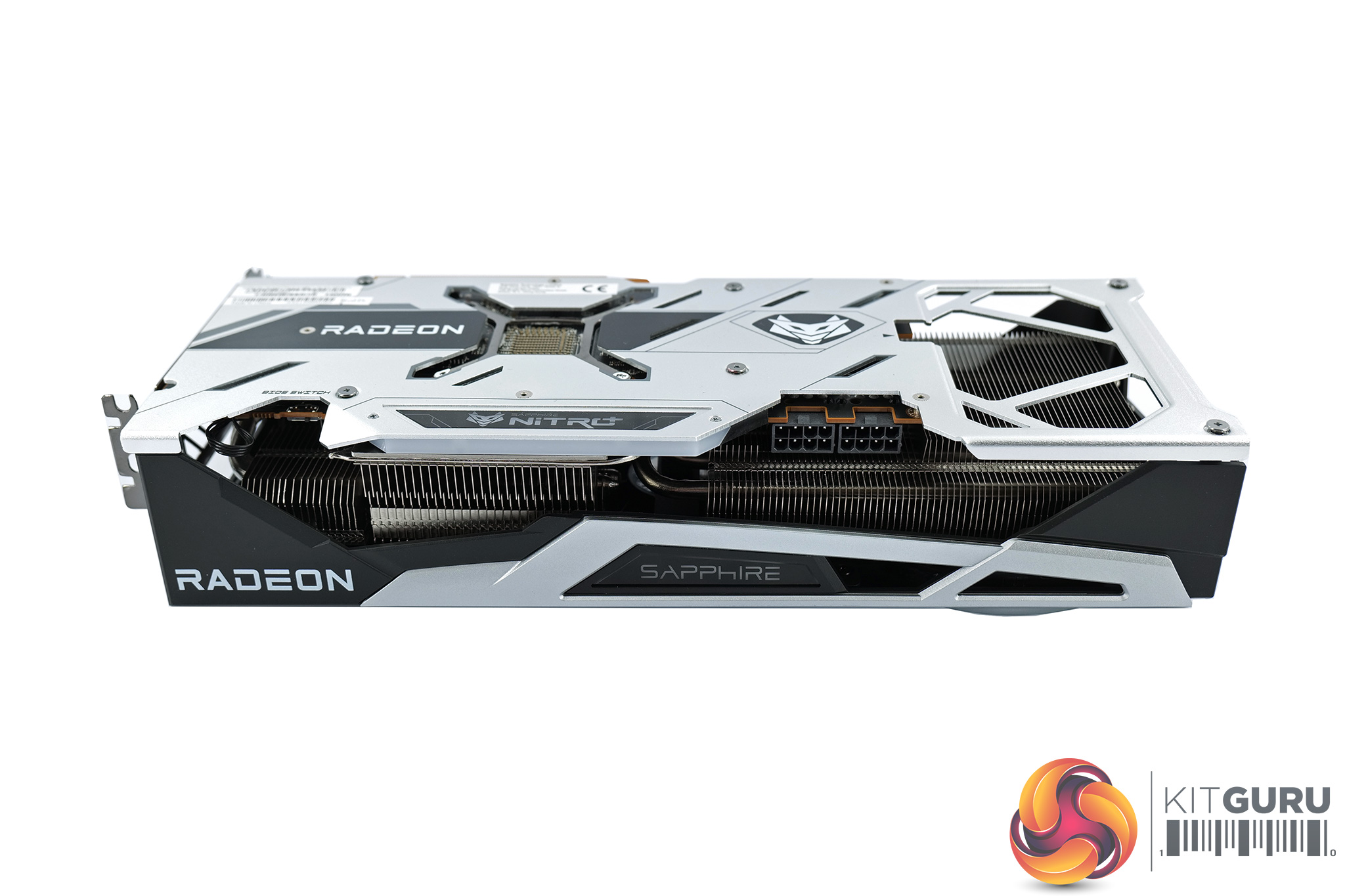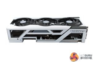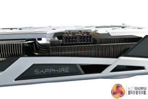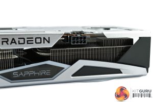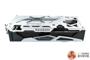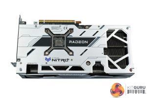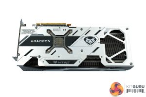 We can also note a tasteful silver backplate, made from metal. This sports the Nitro+ and Radeon logos, while there's a large cut-out at the end of the backplate to allow airflow directly through the heatsink and out the back of the card.