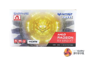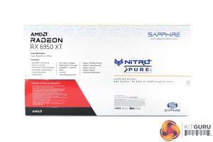 Brand new for the RX 6X50 series is Sapphire's Nitro+ Pure line, and we have this in the form of the RX 6950 XT. It ships in a light grey and yellow box, while the back is white and highlights key features of the GPU.