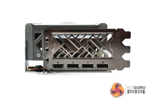 Once more we get a full-length metal backplate, with another large cut-out in the metal towards the end of the card. We can also note the dual-BIOS switch, allowing a choice of the Performance or Silent modes, and the third option to toggle between the two using Trixx.
