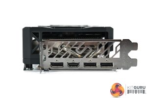 Power requirements consist of 1x 8-pin PCIe connector, and we can note 3x DisplayPort and 1x HDMI 2.1 video outputs.