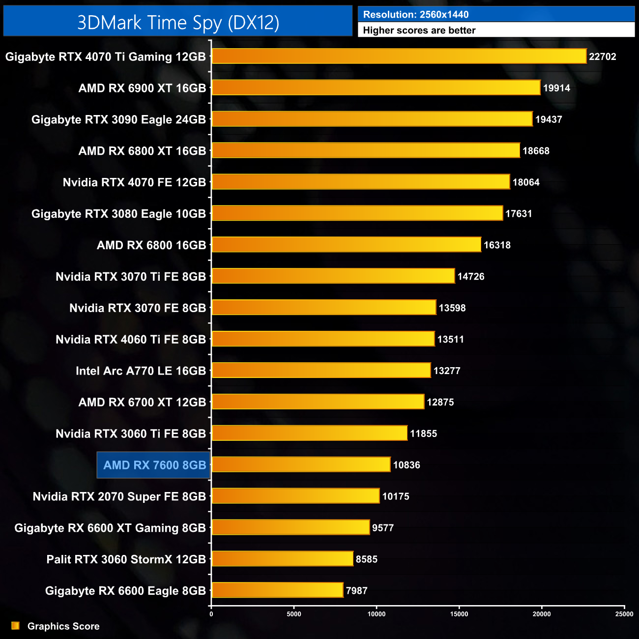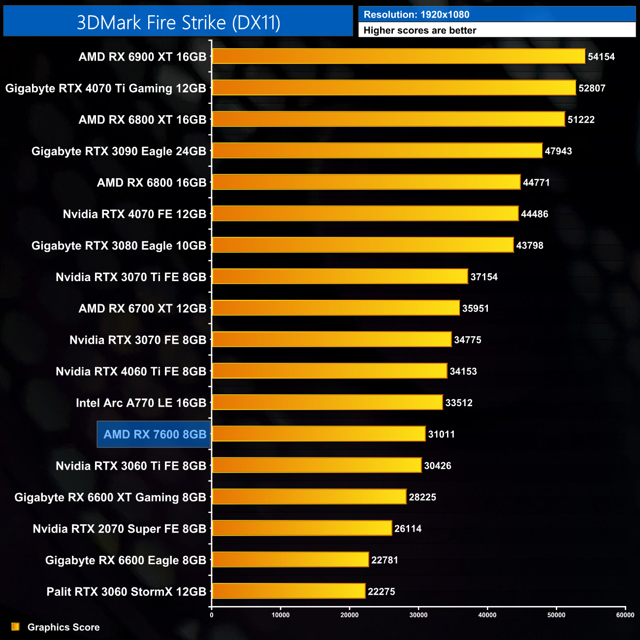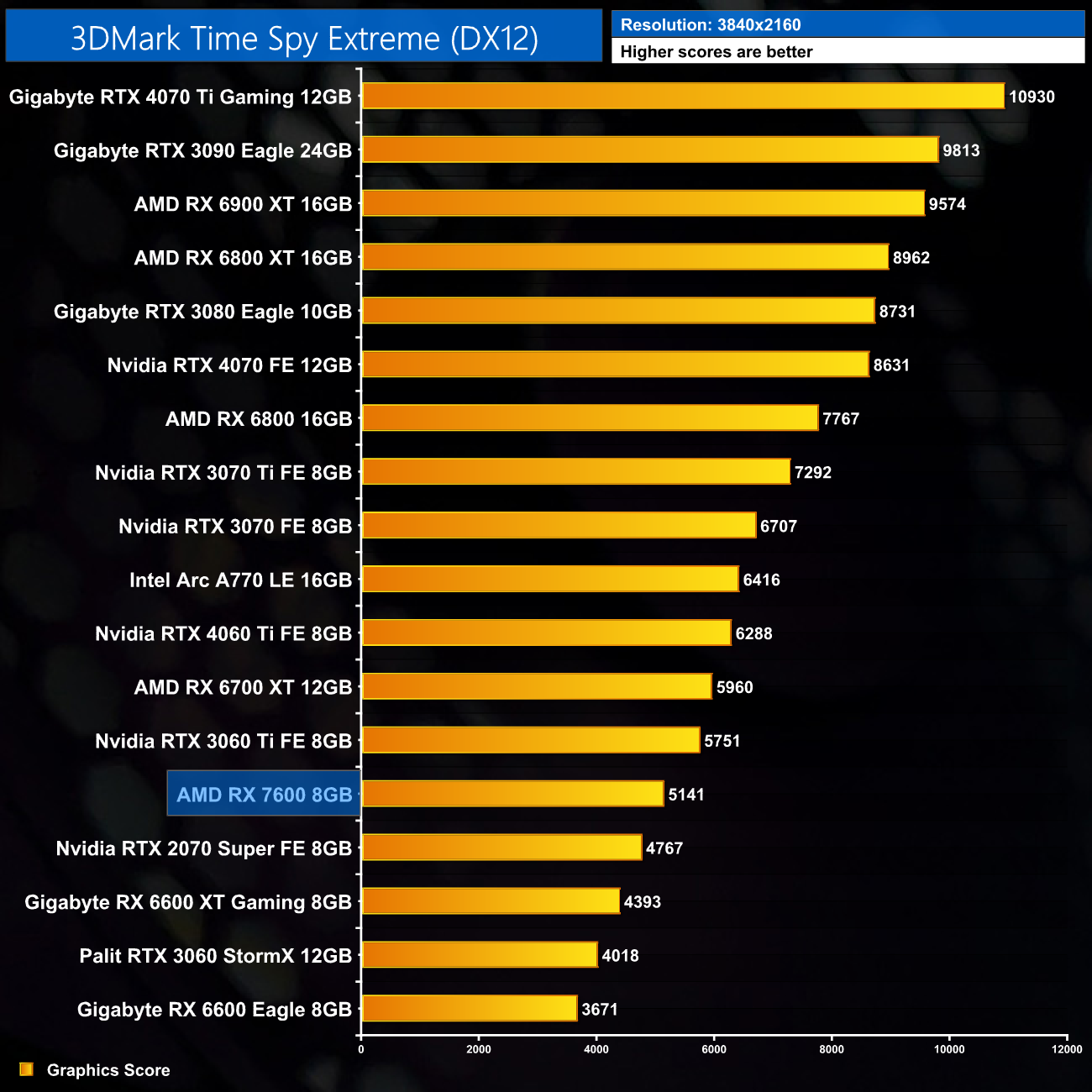 Early performance indicators in 3DMark show see the RX 7600 coming in 35-36% higher than the RX 6600 in Fire Strike and Time Spy. It's even 14% ahead of the RX 6600 XT in the latter benchmark.