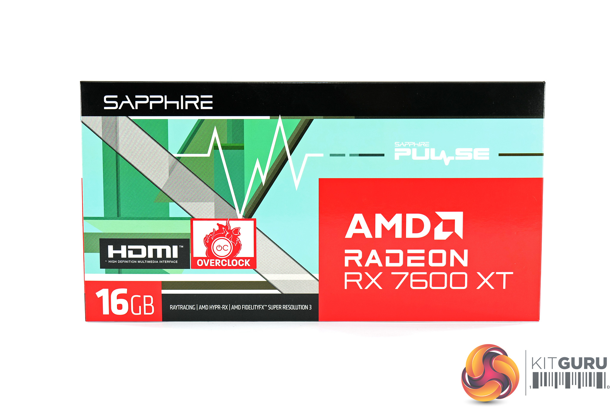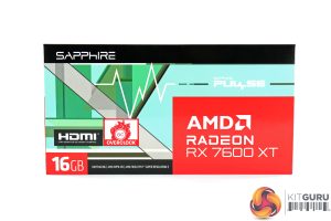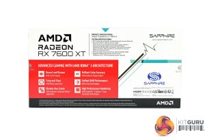 The Sapphire RX 7600 XT Pulse ships in a colourful box, with prominent AMD Radeon branding. On the back, Sapphire highlights various key specs and AMD features.