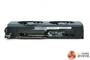 We can also note the dual fan cooler, using Sapphire's Angular Velocity Fan Blades, while each fan measures in at 100mm in diameter.
