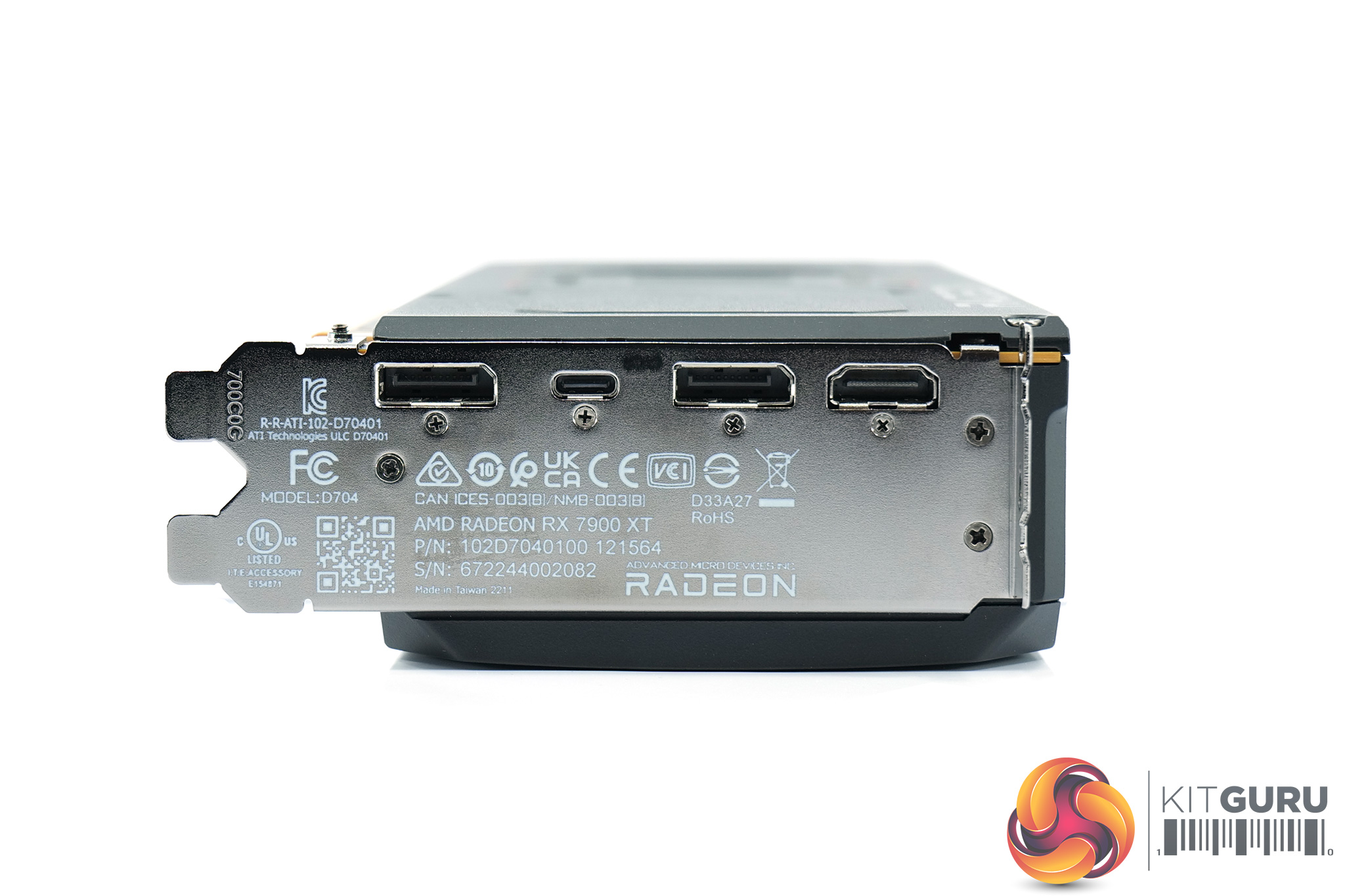 For display outputs, AMD has made the switch to DisplayPort 2.1, offering two full size connectors and DP 2.1 functionality over the USB-C port as well. We also find a single HDMI 2.1 output.