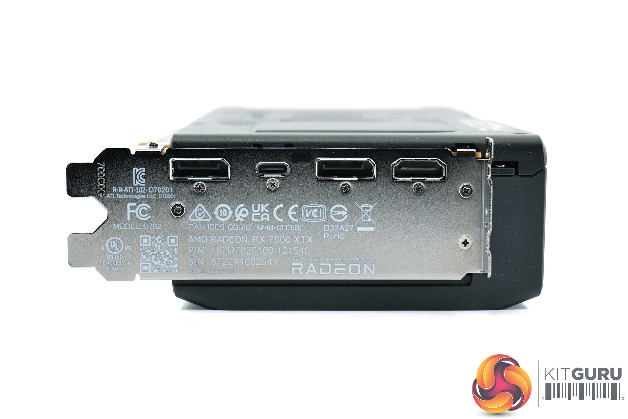 For display outputs, AMD has made the switch to DisplayPort 2.1, offering two full size connectors and DP 2.1 functionality over the USB-C port as well. We also find a single HDMI 2.1 output.