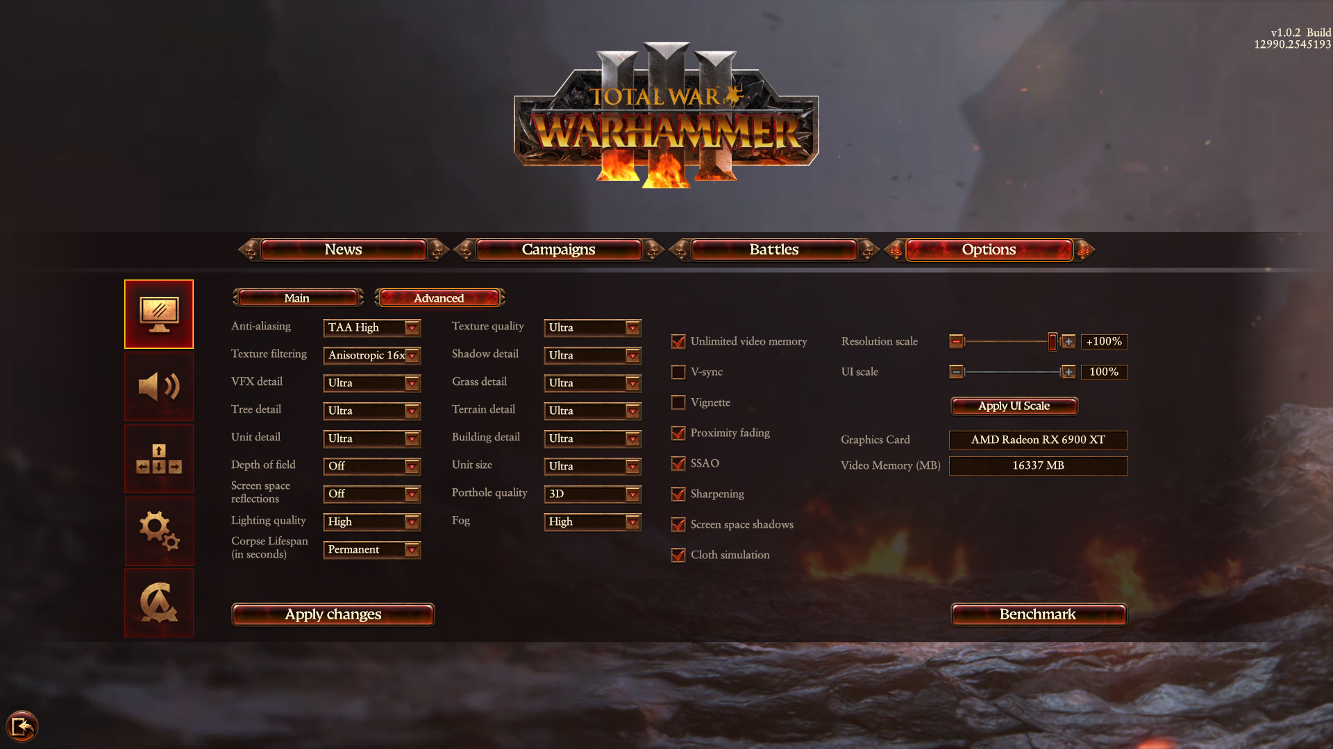 Engine: TW Engine 3 (Warscape). We test using the Ultra preset, with unlimited video memory enabled, DX11 API.