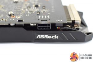 The PCB itself is relatively short – the heatsink overhangs it by about 4.5cm – and the 6 power phases for the GPU, as well as the single power phase for the memory, are immediately evident.
