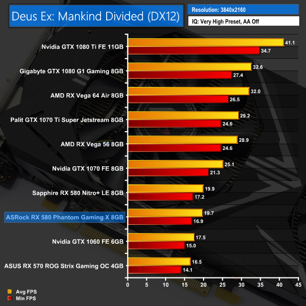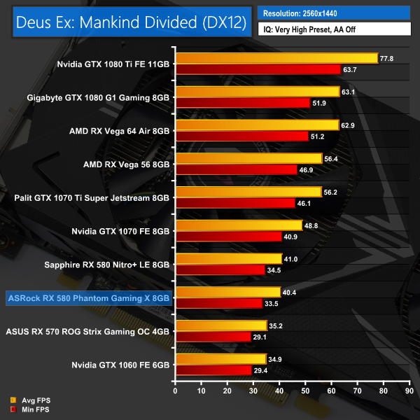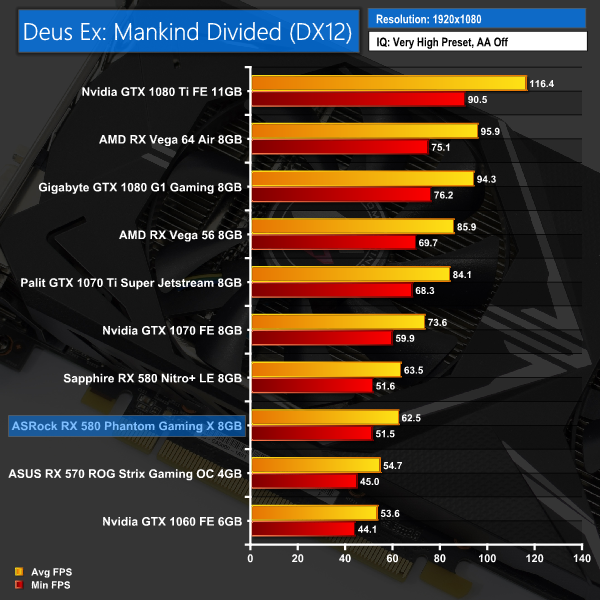 The same trend is exhibited with Deus Ex – the Phantom Gaming X is marginally slower than the Sapphire Nitro+, though the difference is just 1fps on average at 1080p.