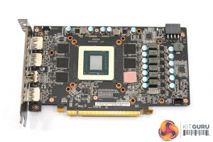 As for the backplate, the first thing you'll really notice is that it only covers the length of the PCB, which itself is quite short – meaning there's almost three inches of heatsink left uncovered. That's not necessarily a bad thing, but personally I think it would look neater if the backplate extended the full length of the card; then again, that might adversely affect thermal performance due to restricted airflow through the heatsink.