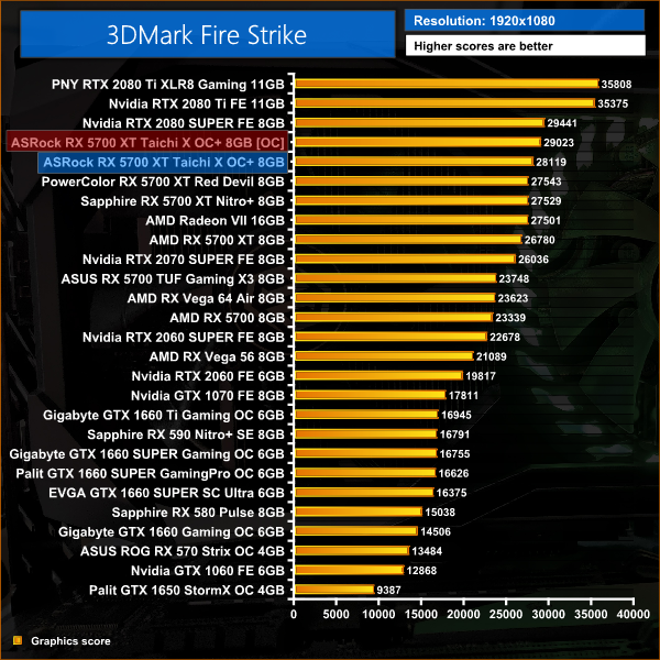 As expected, this didn't result in huge gains – Navi doesn't manually overclock too well as we know by now. Still, our 3DMark scores and real-game tests saw improvements between 4-6%, so it's not terrible – it's just not that great either.