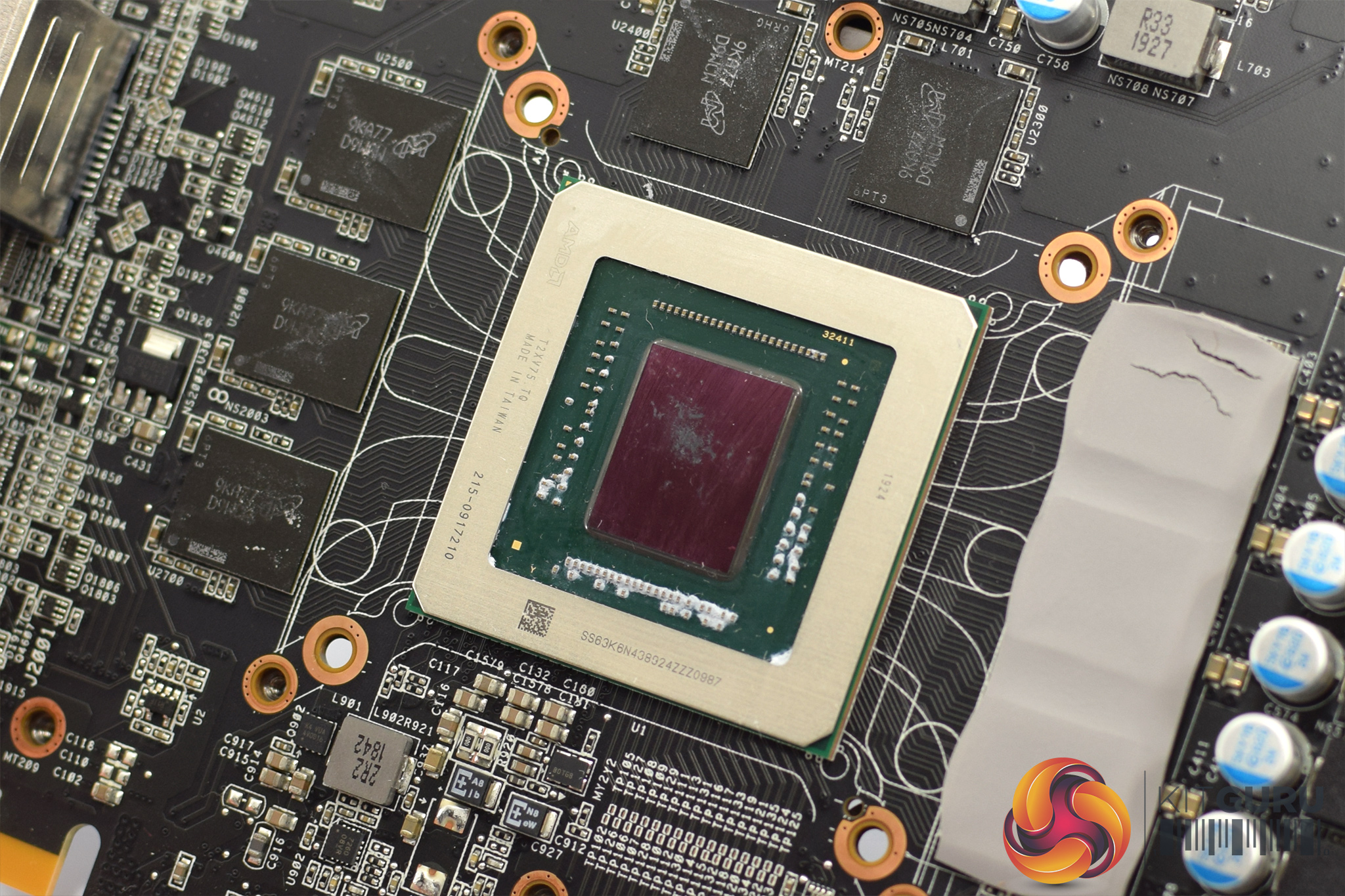 Once that frame is removed, the bare PCB is exposed and we can see ASRock has opted for a 10+1 phase VRM for the GPU, and a 2-phase VRM for the memory. The memory modules themselves are from Micron, each chip is labelled ‘9KA77D9WCW'. Lastly, we can also see the 251mm² Navi 10 GPU sitting in the middle of the PCB.