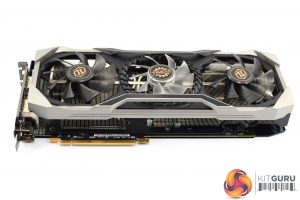 Now, as for the card itself, I have to say this is probably the most unique-looking RX 5700 XT partner card that I have seen so far. The shroud is a mix of black and silver/grey plastic, but it has a prominent, angular design which gives it a fairly aggressive appearance. Some parts of the shroud are also raised above the fans, giving it more of a ‘3D' look.