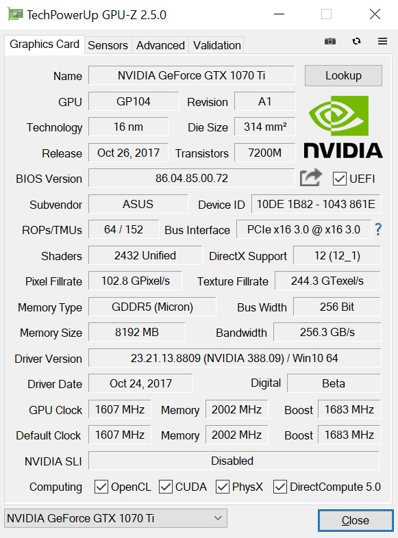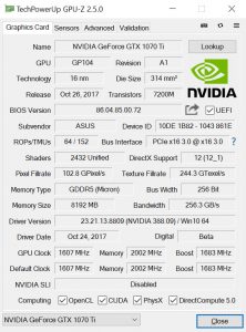 GPU | Geforce GTX 1070 Ti | Geforce GTX 1080 | Geforce GTX 1070 |