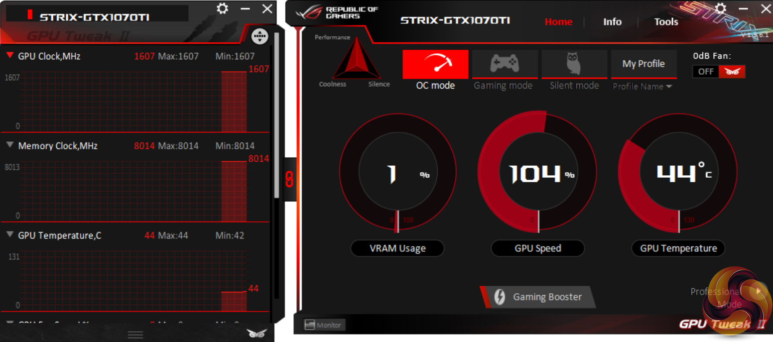 We tested the Strix GTX 1070 Ti in ‘OC mode'. This is the one-click overclock solution we discussed on the first page. All it does is add +76MHz to the GPU core, and nothing else.