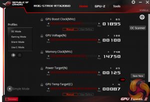 To overclock the Strix 2060, we used ASUS GPU Tweak II. We were able to add an extra 35MHz to the GPU core (on top of the extra 30MHz provided by the OC Mode preset), and 750MHz to the GDDR6 memory.