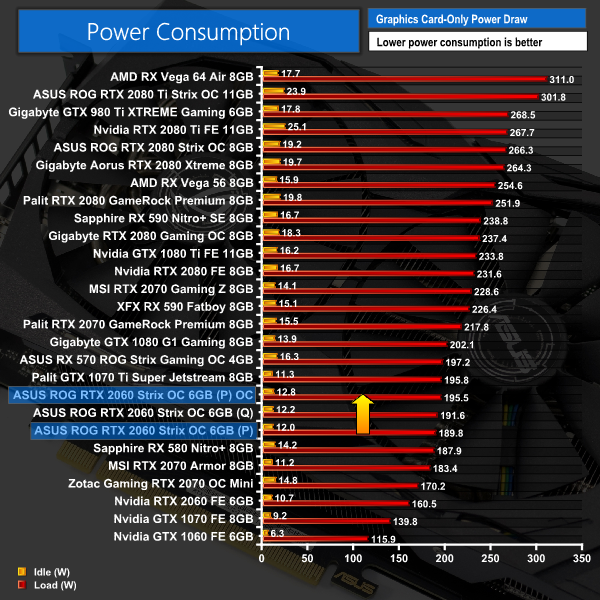 Power consumption, too, was barely affected, with total power draw rising by under 6W.