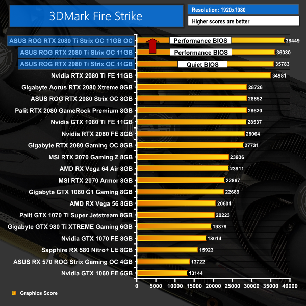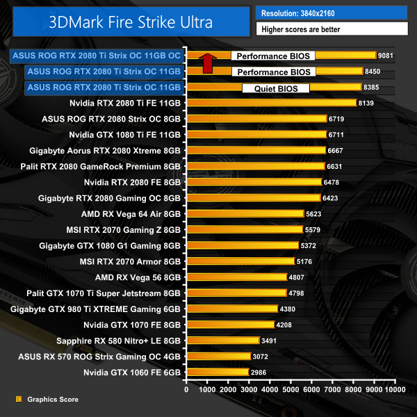 This overclock definitely brought some solid gains – our Fire Strike score shot up almost 2500 points, while we also saw between 3-5FPS improvements when gaming at 4K.